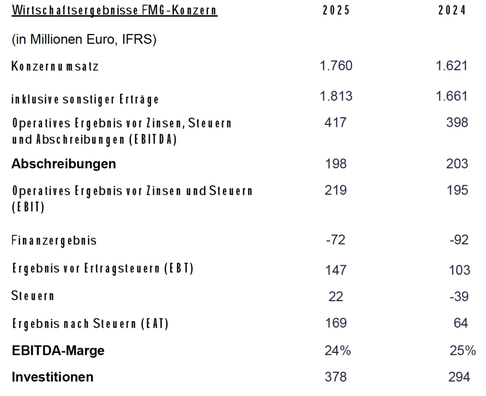 Der Flughafen München Konzern hat im Jahr 2025 erneut ein positives Ergebnis nach Steuern von 169 Millionen Euro erzielt. Gegenüber dem Vorjahr entspricht dies einer erheblichen Steigerung um 105 Millionen Euro. Getragen vom Wachstum bei den Passagierzahlen und Flugbewegungen erhöhten sich die Umsatzerlöse auf einen neuen Rekordwert von knapp 1,8 Milliarden Euro. Auch das operative Ergebnis vor Zinsen und Steuern konnte deutlich verbessert werden und belief sich auf 219 Millionen Euro nach 195 Millionen Euro im Vorjahr.