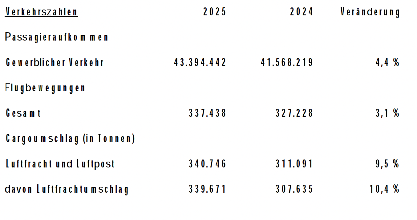 Der Flughafen München Konzern hat im Jahr 2025 erneut ein positives Ergebnis nach Steuern von 169 Millionen Euro erzielt. Gegenüber dem Vorjahr entspricht dies einer erheblichen Steigerung um 105 Millionen Euro. Getragen vom Wachstum bei den Passagierzahlen und Flugbewegungen erhöhten sich die Umsatzerlöse auf einen neuen Rekordwert von knapp 1,8 Milliarden Euro. Auch das operative Ergebnis vor Zinsen und Steuern konnte deutlich verbessert werden und belief sich auf 219 Millionen Euro nach 195 Millionen Euro im Vorjahr.