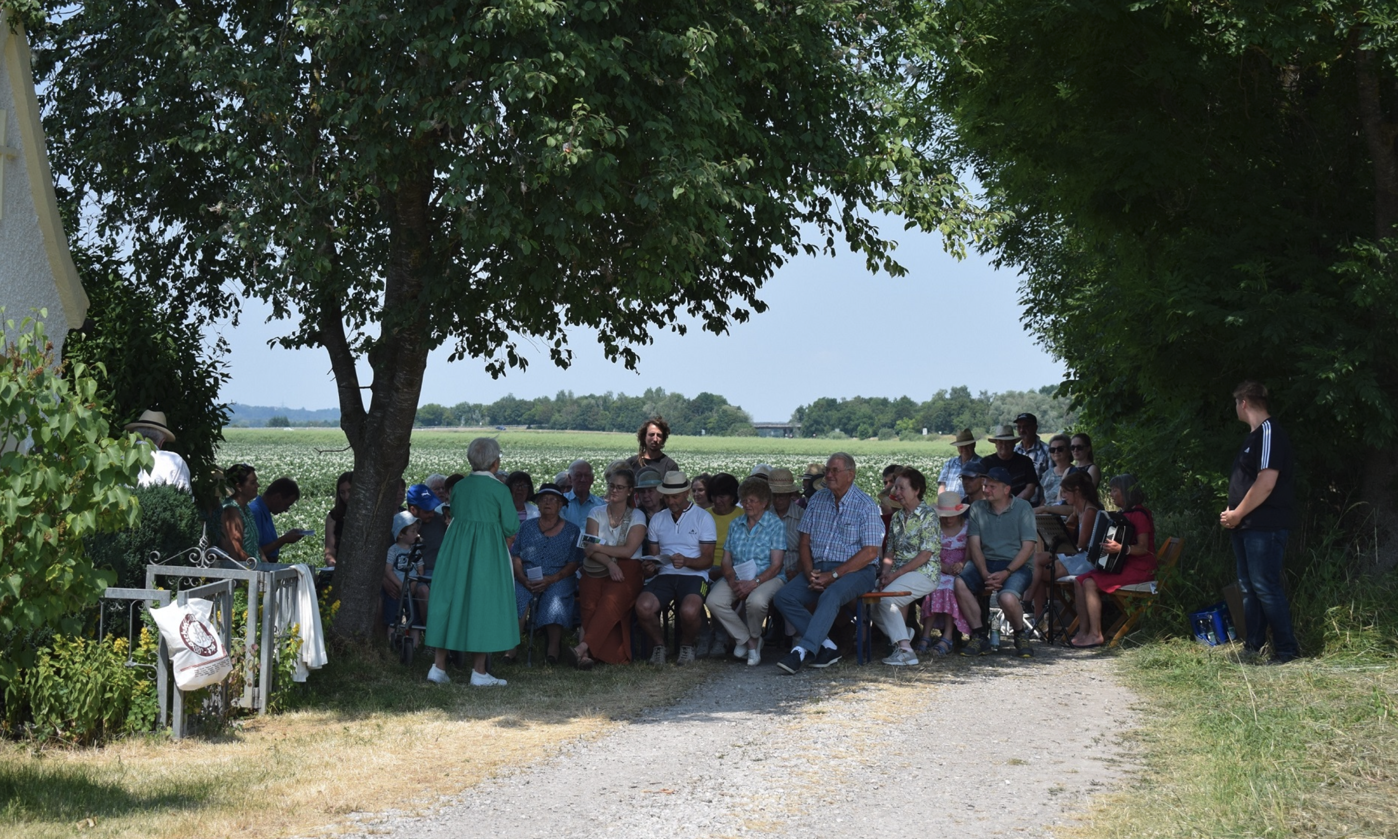 70 Jahre später nun ist der ehemalige Bauernhof längst Geschichte, doch die die im Stil der Lourdesgrotte gestaltete Brunner Karl-Kapelle gibt es noch immer. Von der Familie stets liebevoll gepflegt und geschmückt hat sie trotz der v.a. durch den Flughafen stark veränderten Umgebung nichts an Strahlkraft eingebüßt. Für die Nachkommen ist es eine Ehrensache, dass sie sich weiterhin um die Kapelle kümmern wollen und dass sie für jeden, der sie besuchen will, offensteht. Zum 70. Geburtstag der Brunnerkapelle hielt Rosemarie Huber, Gemeindereferentin im Ruhestand und selbst Enkelin des Erbauerpaares, vor Ort eine wunderbar gestaltete Dankandacht. Neben den verbliebenen drei Kindern Marie, Schorsch und Leni, den Enkeln, den Ur- und Ururenkeln fanden sich dazu auch andere Schwaiger ein, um dieses Kleinod im Ort zu würdigen. Anton Hellinger war einer von ihnen, auch er hat eine besondere Beziehung zur Brunner Karl-Kapelle, durfte er doch bereits vor sieben Jahrzehnten bei deren Einweihung als Ministrant mitwirken. Da der Landwirt über viele Jahre Äcker in der Nähe bearbeitet hatte, besuchte er die Kapelle auch danach noch regelmäßig und freute sich dabei stets über die schöne Gestaltung und den immer frischen Blumenschmuck.