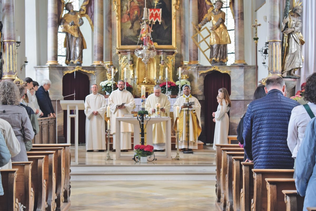 Los ging´s – wie könnte es auch anders sein – mit einem feierlichen Gottesdienst, den Diakon Bauer zusammen mit drei weiteren Geistlichen (Pater Thomas, Matthias Keßler und Josef Schmid) abhielt. Die Predigt war bei „seiner“ Messe dieses Mal freilich August Bauer vorbehalten, er zog Parallelen zwischen den Jüngern Jesu, die ihren Herrn nach dessen Auferstehung zuerst nicht erkannt hätten und den modernen Problemen und der Hektik im Alltag, die es einem oft erschweren würden, das Göttliche für sich selbst herauszufiltern. Am Ende des Gottesdienstes dann bedankte sich Diakon Bauer noch bei allen Anwesenden für die vielen tollen Begegnungen, die er in den letzten dreieinhalb Jahren im Pfarrverband erleben durfte. „Zusammenkommen, das ist das, was bleibt.“, so der bewegte Geistliche.