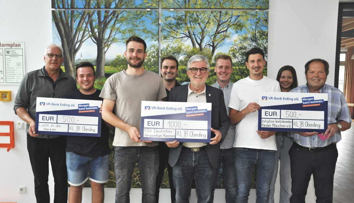 Jedes Jahr Anfang Dezember organisiert die Katholische Landjugend Oberding einen Nikolausdienst, den die Familien in der Gemeinde gegen eine kleine Spende buchen können. Dabei sind die begrenzten Zeiten dafür immer restlos ausgebucht. Die Erlöse spendet die Jugendvereinigung in regelmässigen Abständen an wohltätige Organisationen. So kam in den vergangenen Jahren wieder ein hübsches Sümmchen zusammen. Der Chef der KLJB Oberding Sebastian Simmet und seine Vorstandsmitglieder haben sich nun für das Leserhilfswerk des Erdinger Anzeigers „Licht in die Herzen“ mit 500 Euro, den Förderverein des Deutschen Herzzentrums München mit 1000 Euro und der Initiative Krebskranker Kinder München mit 500 Euro entschieden. Zur Übergabe im Oberdinger Bürgerhaus kamen deswegen gerne die Vertreter der bedachten Organisationen für ein gemeinsames Gruppenfoto zusammen.