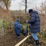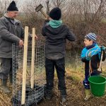 Gegen 11 Uhr griff auch Zweiter Bürgermeister Anton Nußrainer zur Schaufel. Er packte tatkräftig mit an und half unter anderem dem Oberdinger Kurier, einen eigenen Baum zu pflanzen. Im anschließenden Gespräch betonte er, wie sehr solche Aktionen davon leben, dass Menschen gemeinsam Hand anlegen, um etwas Großes und Wichtiges zu schaffen. Bis in den frühen Nachmittag hinein wurde ein Baum nach dem anderen entlang des Bachlaufs gepflanzt. An den Gittern, welche die Bäume vor Wildverbiss und anderen gefahren schützen, hingen Namensschilder, die Kinder und Erwachsene bemalten und befestigten. Für das leibliche Wohl sorgte Werner Stemmer: Wurstsemmeln, Käsebrote, Kinderpunsch, Glühwein sowie zahlreiche Kaltgetränke standen bereit. Dank der finanziellen Unterstützung, der Gemeinde Oberding, der Firma S-K-S, der Schreinerei Mücke und der Jagdpächterfamilie Schweiger, konnte die Veranstaltung in dieser Form stattfinden.