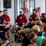Am ersten Tag legten die insgesamt 10 Trainer den Fokus auf Ballschule und Spielformen, ergänzt durch ein separates Torwarttraining mit den beiden Torhütern der Bayernligamannschaft des FC Schwaig Maxi Huber und Philipp Strunk. Als besonderes Highlight fand in der Mittagspause eine Pressekonferenz mit Spielern der Ersten Mannschaft des FC Schwaig statt. Landesligatorschützenkönig Raffi Ascher, Leon Roth, Vincent Sommer, Hannes Empl, Maxi Huber und Philipp Strunk waren gekommen und beantworteten offen und mit viel Freude die zahlreichen Fragen der Kinder.