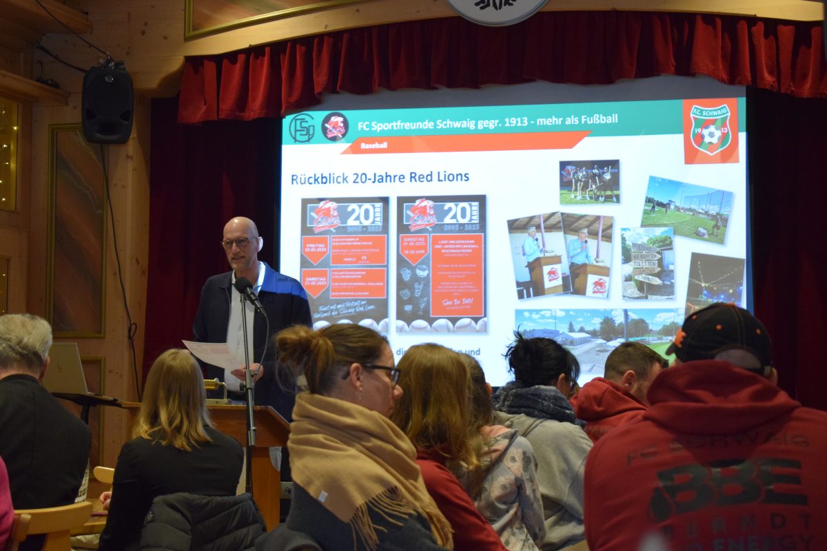 Es folgte der Bericht der Baseballer der Red Lions, für den sich Abteilungsleiter Rainer Singvogel verantwortlich zeichnete. Er sprach zuerst über das gesellschaftliche Highlight des vergangenen Jahres, nämlich die Feier zum 20jährigen Bestehen der Red Lions als Abteilung unter dem Dach des Sportvereins FC Schwaig. Singvogel zeigt sich „stolz auf das, was geschafft wurde“, und auch wenn es ruhig etwas mehr Gäste hätten sein dürfen, so habe man doch alles in allem richtig „viel Spaß gehabt“. Er bedankte sich bei allen Unterstützern des Events, speziell hervor hob Singvogel dabei die fleißigen Aufbauhelfer vom Moosmotor Schwaig sowie die Gemeinde, die das Zelt kostenfrei zur Verfügung gestellt hatte, hervor. Dann kam der Vorstand auf das Sportliche zu sprechen, wobei hier mit dem Klassenerhalt der 1. Mannschaft in der Zweiten Baseball-Bundesliga sowie dem Aufstieg der 2. Mannschaft in die Bayernliga große Erfolge gefeiert werden konnten. Rainer Singvogel berichtete, dass ein neuer Coach für die Erste verpflichtet wurde, Spielertrainer Esahu Tejada habe sich als die erhoffte Verstärkung erwiesen. Ein weiterer Beleg für die tolle Arbeit der Red Lions war, dass die 1. Mannschaft ganz aktuell den Ampercup in Allershausen gewonnen hatte, was gleichbedeutend mit dem Titel des Bayerischen Meisters ist. Singvogel nutzte die Gelegenheit noch, um sich bei zwei verdienten Helfern zu bedanken, die nun ihr Amt abgaben: Martin Hillebrand und Marco Kalek haben sich beide über 17 Jahre lang ehrenamtlich als Coaches engagiert, wofür es viel Applaus gab. Schließlich bedankte sich Rainer Singvogel noch bei der Gemeinde, bei allen Helfern, bei den Sponsoren und bei sämtlichen Vorstandskollegen für die perfekte Zusammenarbeit, die noch immer „super viel Spaß“ mache. Anschließend übergab er das Wort an Nils Wölken, den Abteilungsleiter der Sparte „Gym & Fit“. Wölken berichtete, dass im Dezember die internen Wahlen stattgefunden hätten und er selbst und seine Stellvertreterin Ionna Biewer der Abteilung weiter vorstehen würden. Insgesamt käme die Gymnastikabteilung auf rund 150 Erwachsene und ca. 70 Kinder, was zeige, wie sehr diese Form von Sportangebot inzwischen an Bedeutung gewonnen habe.