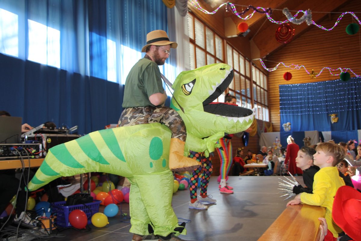 An diesem Sonntagnachmittag wimmelte es dort nur so von verkleideten Gestalten. Tiere aller Art tummelten sich zwischen den Tischen und auf der Tanzfläche, man entdeckte Zauberer, Waldzwerge und Polizisten. Dart Vader und Spiderman probierten kurz mal aus, wer stärker ist, Astronauten und sogar Edward mit den Scherenhänden wurden gesichtet. Zarte Prinzessinnen schwebten durch die Halle, und auch Pippi Langstrumpf und Pumuckl waren in mehrfacher Ausfertigung anwesend. Sogar viele Mamas und Papas, Omas und Opas hatten sich originell verkleidet. Die Stimmung war bestens. Dafür sorgte vor allem das Animationsteam Geli und Maria, die eine lange Liste mit Liedern und Spielen vorbereitet hatten. Auf die Frage „macht ihr zwischendurch mal eine Pause?“ schüttelten die beiden nur verwundert den Kopf, „nein, das geht bei uns durch bis zum Schluss!“