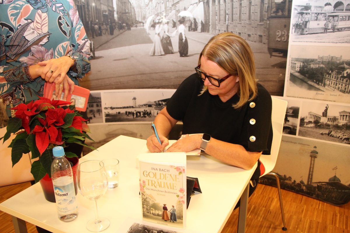 Die Frauen im Publikum nutzten im Anschluss eifrig die Gelegenheit, der Autorin Fragen zu stellen. Da ging es u.a. um ihren Werdegang als Schriftstellerin oder wie die Trilogie über die Münchner Ärztinnen zustande kam. „Wenn Sie wissen wollen, wie es weitergeht, müssen sie es selber lesen…“ riet Ina Bach am Ende ihrer Lesung. Dies ließen sich viele der Anwesenden nicht zweimal sagen und so wurde der Stapel der Bücher, die sie mitgebracht hatte, schnell kleiner. Mit einer persönlichen Widmung wird das eine oder andere Buch bestimmt auch ein Weihnachtsgeschenk werden.