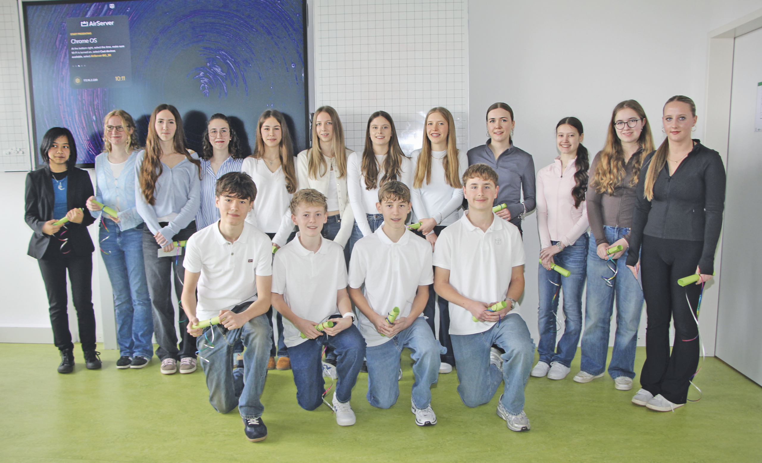 Die Siegerteams der Realschule Oberding präsentieren ihre Projektpräsentation