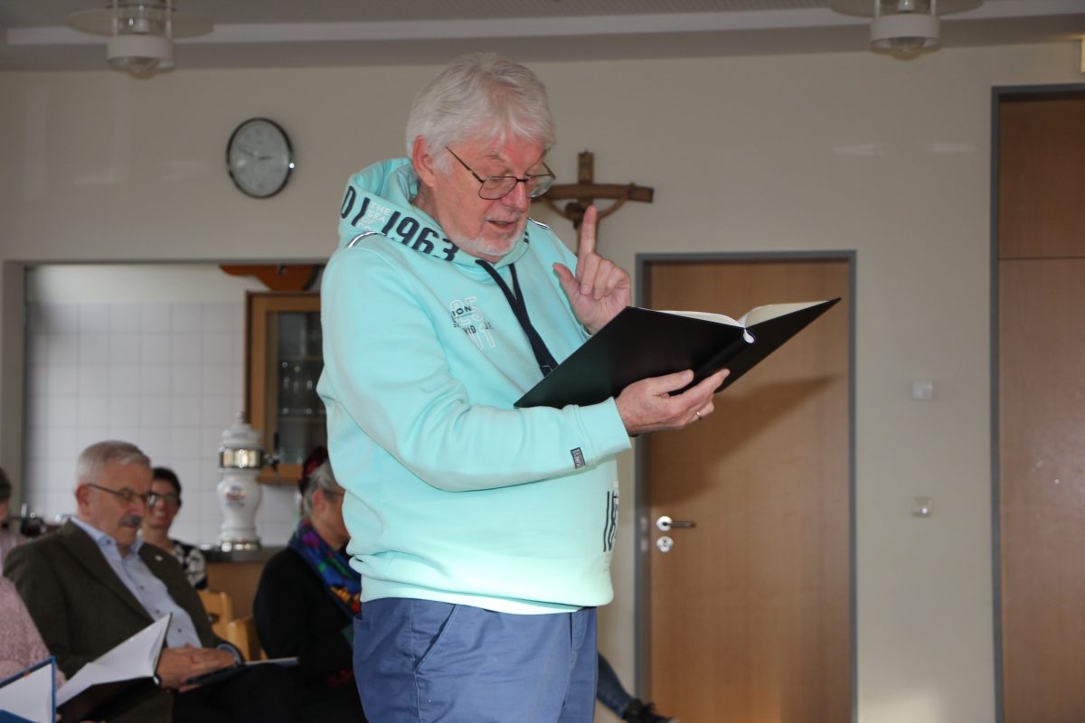 Regelmäßig findet im Pfarrverband Erdinger Moos ein Seniorennachmittag statt, der von der kfd (Kathol. Frauengemeinschaft Deutschland) organisiert wird, für die Bewirtung sorgt die jeweilige Pfarrgemeinde. Am 19. November hatten der Führungskreis der kfd Notzing und der Pfarrgemeinderat Aufkirchen- Notzing wieder einmal ins Notzinger Bürgerhaus eingeladen. Seniorennachmittag – das bedeutet zwar vor allem ein gemütliches Beisammensein mit Kaffee und Kuchen, aber es gibt auch immer ein kleines Programm. Mal ist es ein Vortrag, mal informiert die Polizei und mal gibt es musikalische Unterhaltung. An diesem Novembernachmittag war der Literatur-Club aus Erding mit Texten von Karl Valentin zu Gast. Auf Anregung von Silke Hörold-Ries, Seniorenbeauftragte der Stadt Erding und Leiterin im „Haus der Begegnung, wurde vor zwei Jahren ein Workshop „Lebendiges Vorlesen“ unter der Leitung von Schauspieler und Autor Klaus Schiermann angeboten. Die Teilnehmerinnen und Teilnehmer lernten dabei Atem-, Stimm- und Sprechtechnik, Mimik und Körpersprache. Das machte ihnen so viel Spaß, dass sie sich auch weiterhin trafen und den Literatur-Club gründeten, der nun für Lesungen bei Seniorentreffen mit Texten verschiedener Autoren gebucht werden kann.