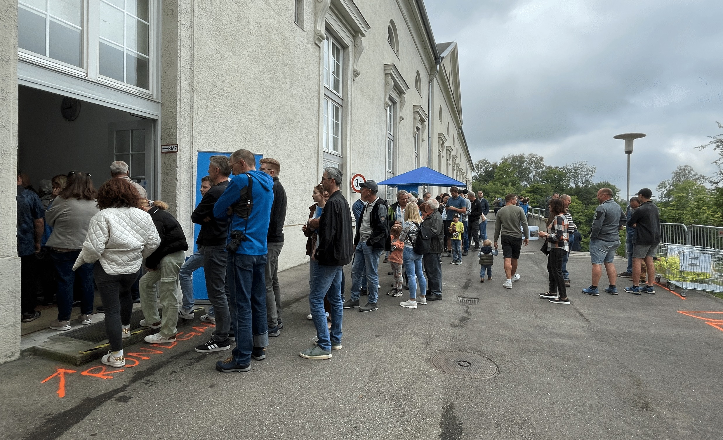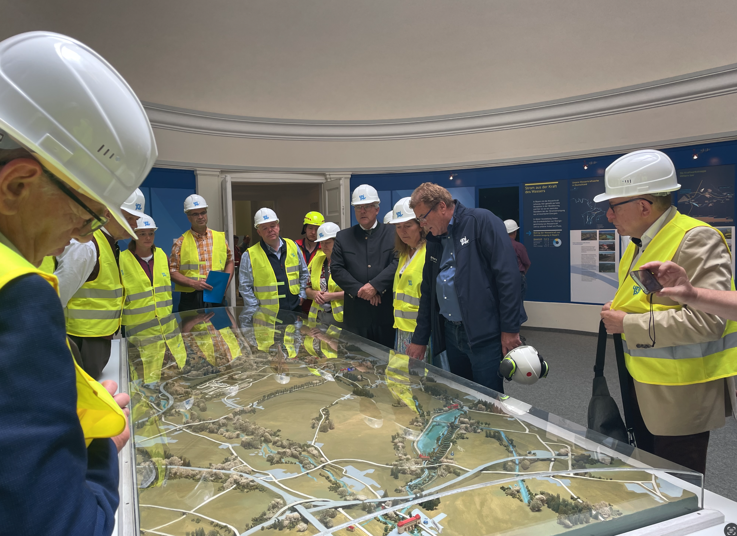 Langes Anstehen, um einen Blick hinter die Kulissen des Kraftwerks Aufkirchen zu erhaschen – alles natürlich unter Sicherheitsmaßnahmen wie einen Helm und eine Warnweste.