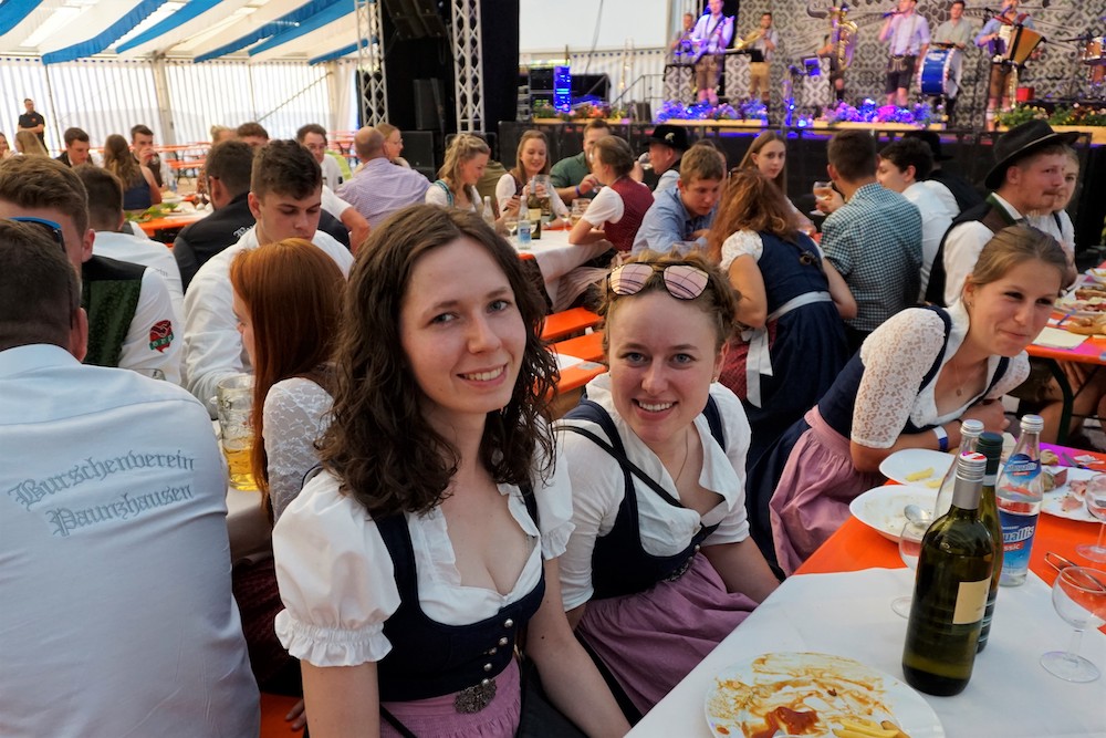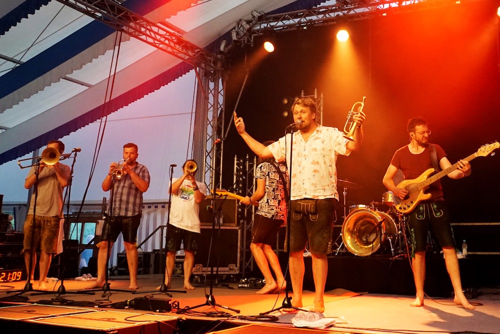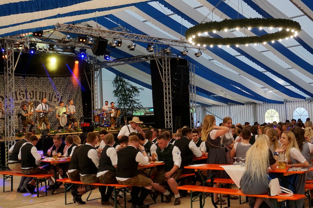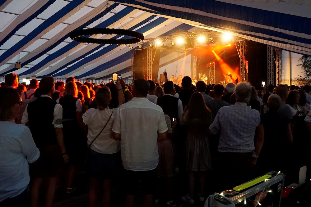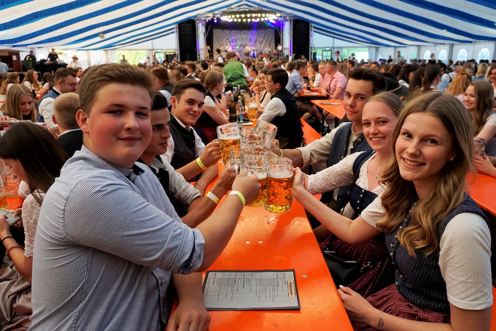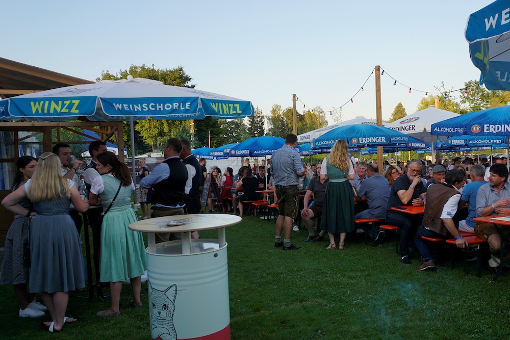 Die Oberdinger und ihre Gäste wissen das ganz offenbar zu schätzen. Nach zwei Jahren „nix geht“ begießen sie fesch „aufgebrezelt“ in Dirndl und Lederhose die Jubiläen ausgiebig und reichlich, frei nach dem Leitspruch: „Oane is´ koane“. „Bereits am ersten Tag war das Fest sehr gut besucht, und am Donnerstag, dem Familiennachmittag, noch besser, obwohl es zunächst, oberflächlich betrachtet, anders aussah“, zieht Sandtner Bilanz. „Aber das riesige Zelt und das große Gelände vermitteln das schnell, weil sich die Leute sehr verteilen. Ein echtes Highlight war draußen der Biergarten.“ Kein Wunder: bei „echtem Kaiserwetter“ unter freiem weiß-blauen Bilderbuchhimmel ist ein Hopfenkaltschalengetränk schließlich erst richtig süffig: „Wir hatten außerdem viele Schirme, deshalb waren die Plätze immer zuerst weg“, kommentiert Sandtner. Den Glanzpunkt des Feier-Marathons allerdings setzt der Sonntag, erinnert sich Johannes Sandtner begeistert: „Obwohl es eine Hitzeschlacht war, kamen Vertreter von rund 90 Vereinen. Der Zug war bestimmt einen Kilometer lang, das war gigantisch und das hat man sicherlich schon lang nicht mehr gesehen.“